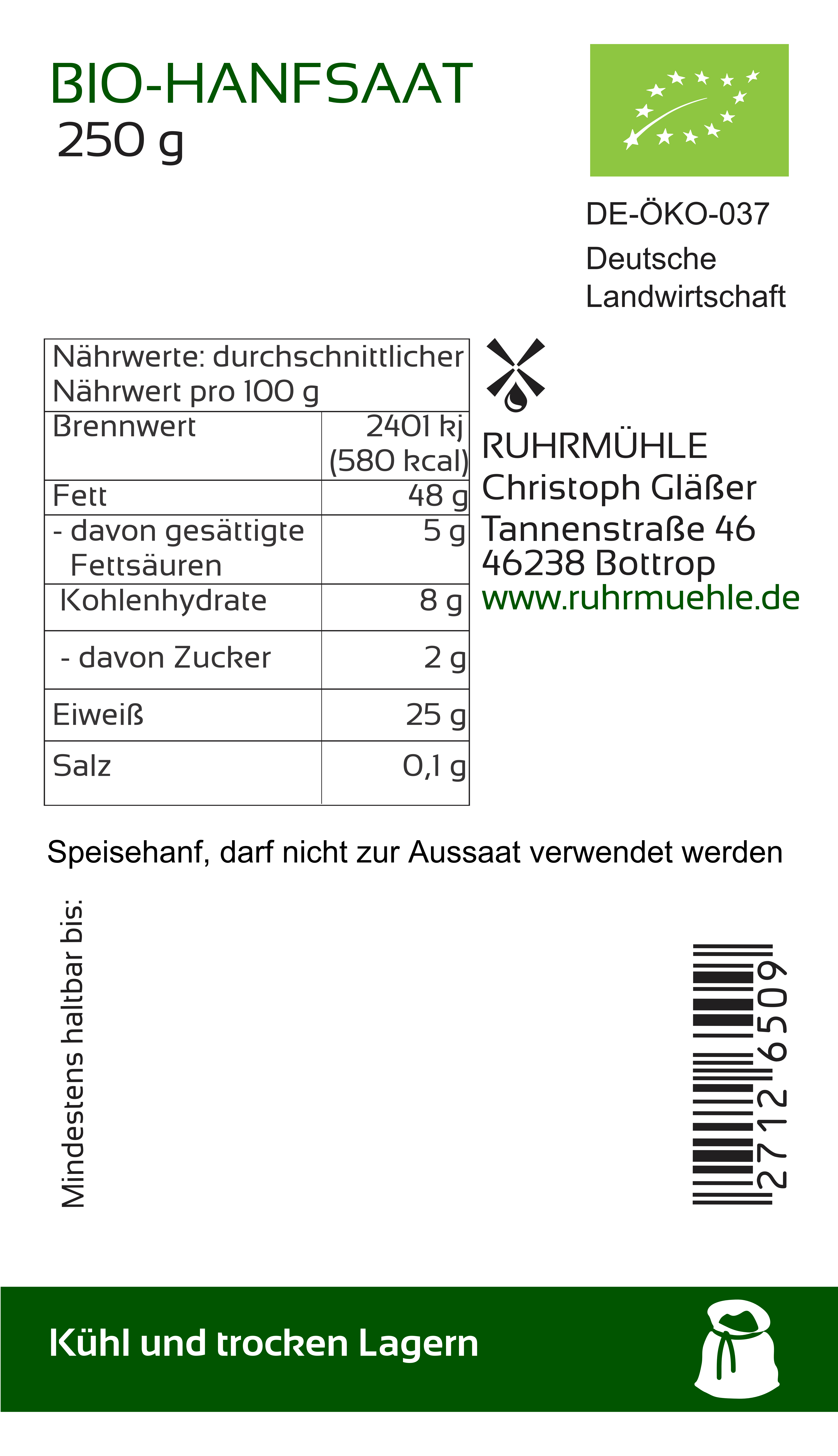 Bio Hanfsamen (DE-ÖKO-037)